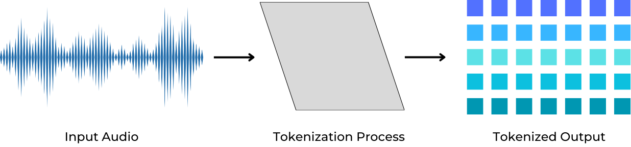 這麼龐大的資料如果直接丟進 Transformer 模型,計算量會像滾雪球一樣爆炸成平方級成長,近期研究者想到的妙招是,把連續的聲音 轉換成離散的符號,也就是 Speech Tokens ,這些 token 保留了音色、語氣等特徵,使模型能以 Transformer 架構進行訓練。